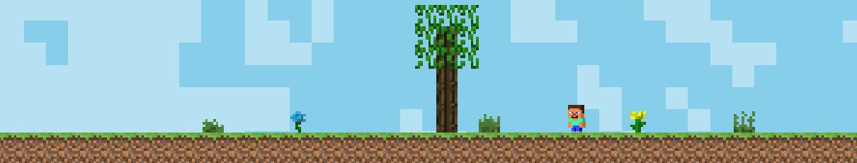 A retro-style sandbox game with 8x8 textures and charming 2D graphics, inspired by classic block-building games.
